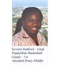 Syreeta Stafford – Attended Peary Middle School while paying in the New ADAGE Basketball League. She was a teammate of Shanell Law at Pepperdine University girls’ basketball team.